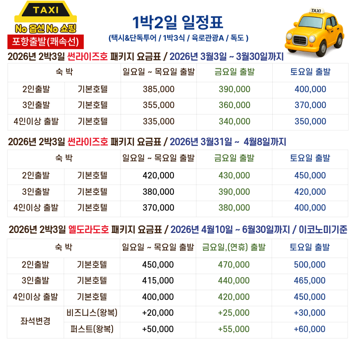 택시(단독) 육로관광 A코스