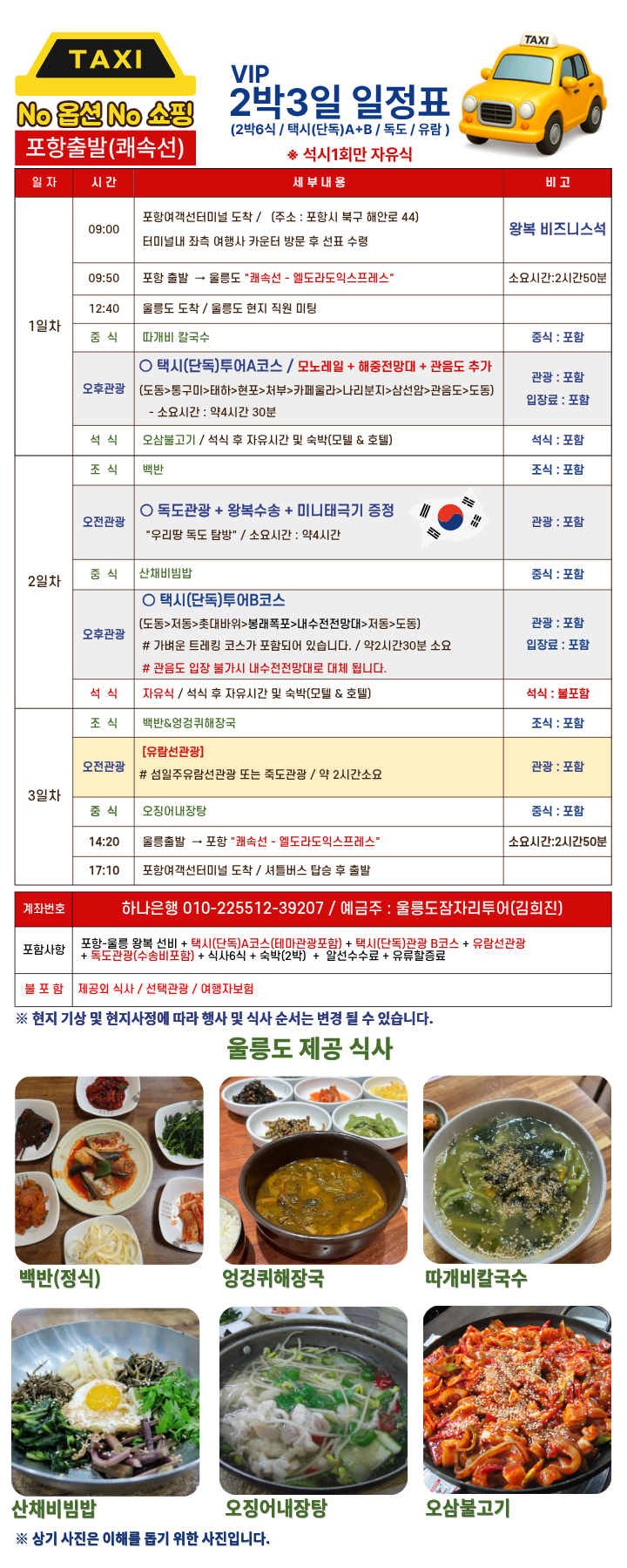 독도관광 선박비 + 수송포함