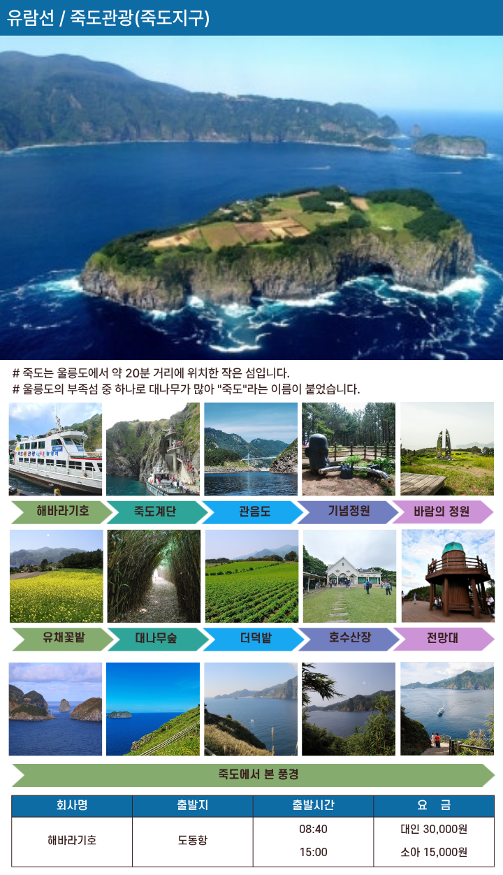 해상관광(유람선 또는 죽도관광)