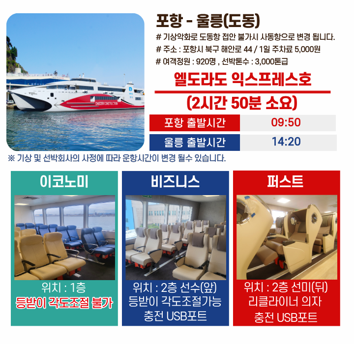 포항출발 > 울릉 / 엘도라도 익스프레스호 09:50