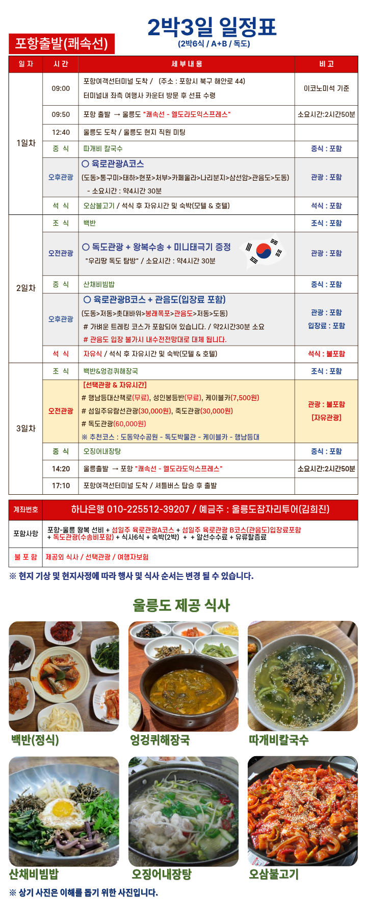 울릉도 숙박비(2박) 섬바디호텔 지정