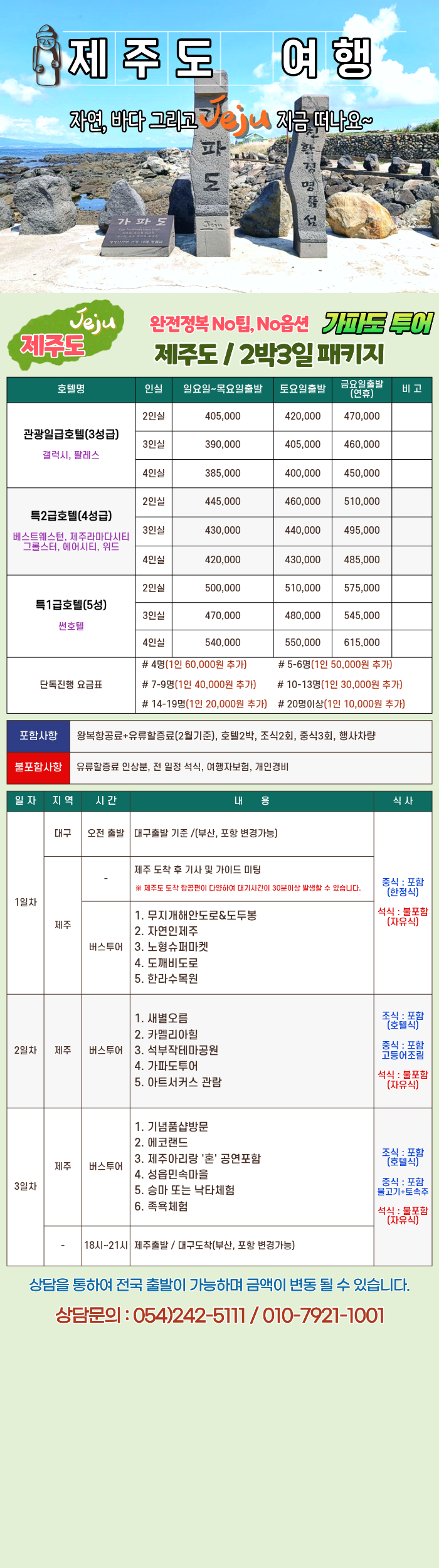 2014년 8월 7일부터 출발하는 모든 국내여행상품은 개인정보보호법(주민등록번호 처리의 제한) 등 관련 법률에 의거하여 개인정보(주민번호) 수집이 불가함에 따라 국내여행자보험 가입이 불포함으로 변경되었습니다. 단, 여행일정 중에 이용되는 교통수단(항공, 철도, 선박, 버스 등)은 각각 별도의 보험이 가입되어 있음을 알려드립니다. 여행자보험 가입을 원하실 경우에는 개별 가입을 권장드립니다. (여행자보험 : 투어세이프 Tel 1800-9010)