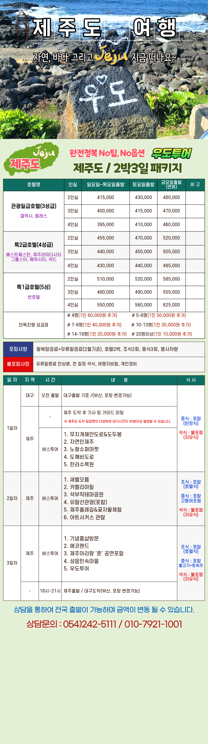 2014년 8월 7일부터 출발하는 모든 국내여행상품은 개인정보보호법(주민등록번호 처리의 제한) 등 관련 법률에 의거하여 개인정보(주민번호) 수집이 불가함에 따라 국내여행자보험 가입이 불포함으로 변경되었습니다. 단, 여행일정 중에 이용되는 교통수단(항공, 철도, 선박, 버스 등)은 각각 별도의 보험이 가입되어 있음을 알려드립니다. 여행자보험 가입을 원하실 경우에는 개별 가입을 권장드립니다. (여행자보험 : 투어세이프 Tel 1800-9010)