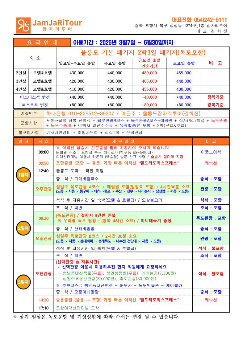 | 여행기간 | 2026년 04월 24일 (금) ~ 2026년 04월 26일 (일) 2박 3일 |